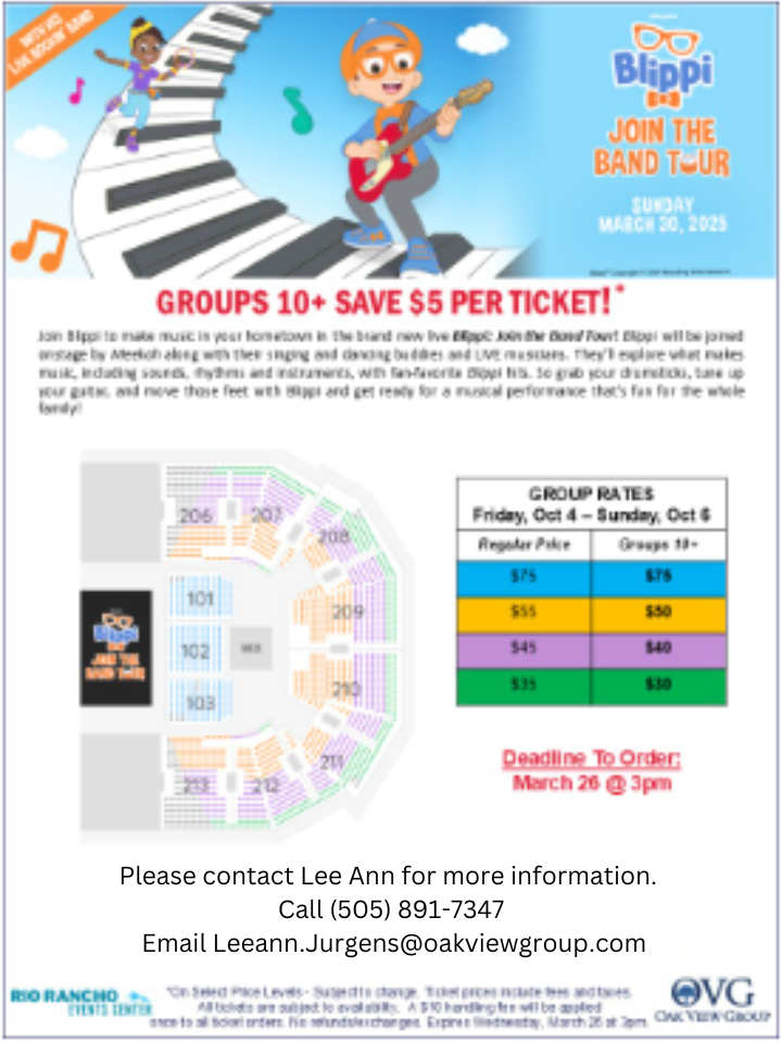 Your family, friends, and colleagues are invited to experience your next One-Of-A-Kind event at the Rio Rancho Events Center as a group. Whether you are a company, organization, church group, youth group, minor sports association or a group of family and friends, we promise to provide you with a great entertainment experience and unparalleled customer service. Gather your group of 10 or more and find out about discounts below. *Discounts on select price levels when purchased through the Rio Rancho Events Center box office.