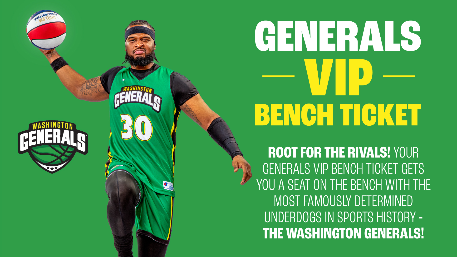 VIP Bench Tickets: Sit on the bench with the Globetrotters or Generals for the entire game and immerse yourself in 100 years of history!
